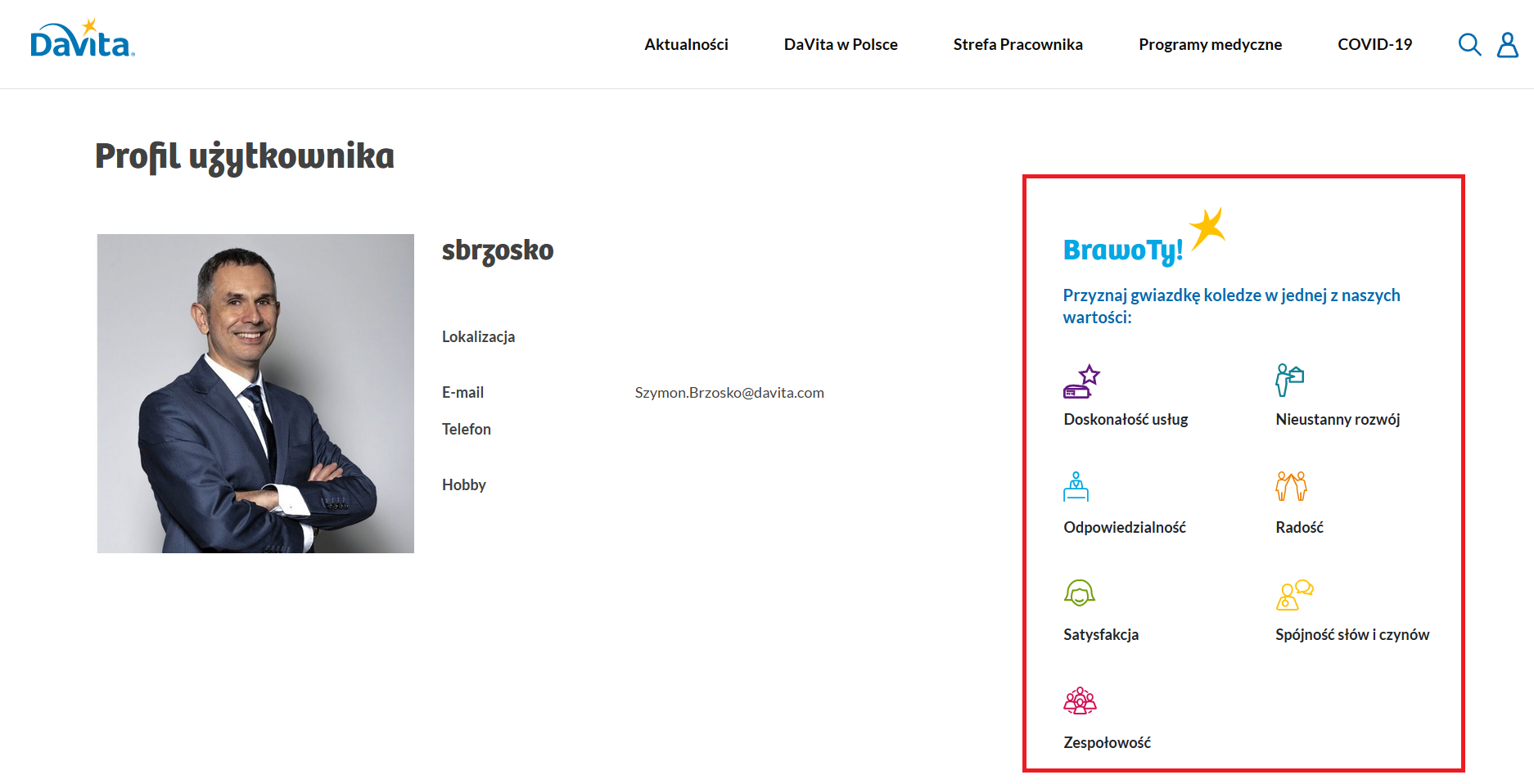 Aplikacja pomoże nam też w przyznawaniu dorocznych wyróżnień DaVita Core Values – głosy z niej będę brane pod uwagę przy wyłanianiu nominowanych i wyróżnionych. Dlatego tak ważne jest, by do gwiazdki dodawać jej uzasadnienie.