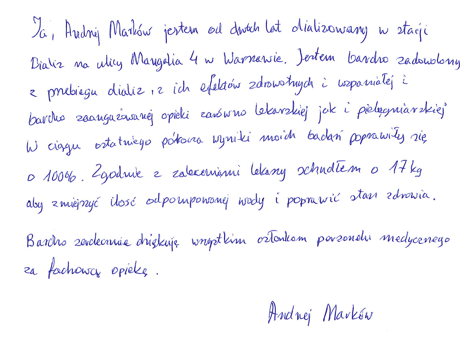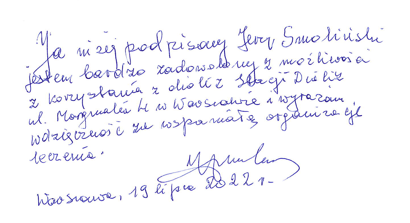 Ostatnio dostaliśmy od naszych pacjentów leczonych w stacji Warszawa Mangalia (stałych i gościnnych) oraz ich opiekunów dużo pięknych wyrazów uznania i podziękowań. Jeden pacjent zostawił nam nawet tomik swoich wierszy: