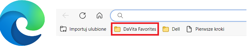 Dzięki temu, że w Edge’u można zamieścić linki do części naszych systemów, które działają poprzez przeglądarkę, z naszych pulpitów zniknęło kilka ikon. Można je odnaleźć pod DaVita Favorites.