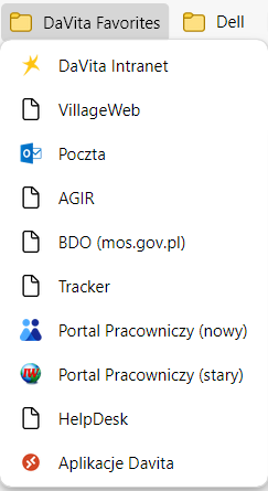 - mogliśmy do niej dodać zakładki DaVita Favorites, w których umieściliśmy linki do systemów DaVitowych, jakie działają przy użyciu przeglądarek,