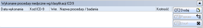 Czyli oczywiście kody, które określają procedury medyczne. W KS-PPS powinniśmy odnotować wszystkie, które w zostały wykonane na koszt naszej poradni. Co też ważne – jeśli nie wpiszemy procedur ICD-9, nie będzie można prawidłowo użyć „grupera wizyt JGP”,  a co za czym idzie – nie otrzymamy refundacji za poniesione koszta.