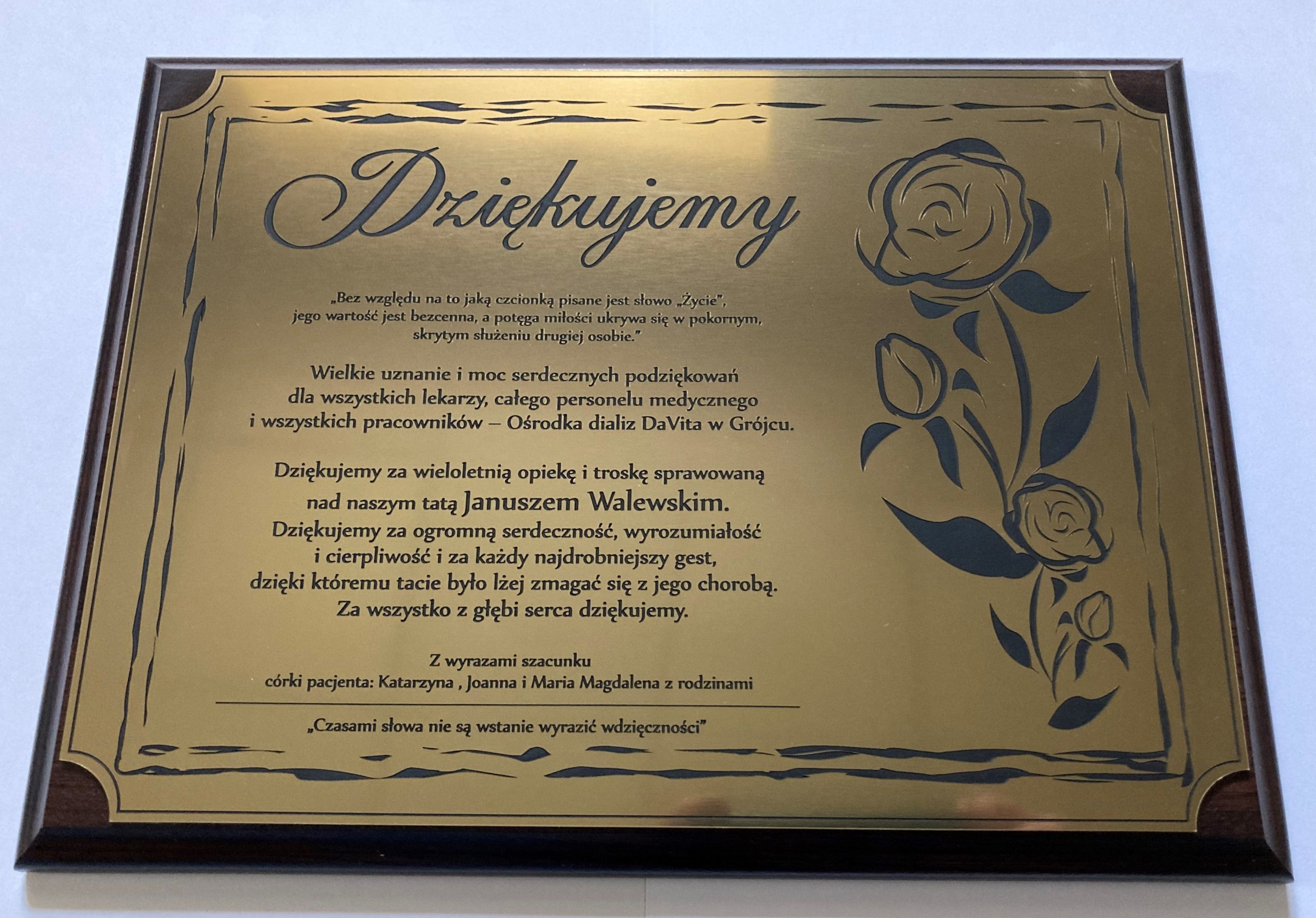 Rodzina pacjenta dziękuję nam za wyjątkową opiekę